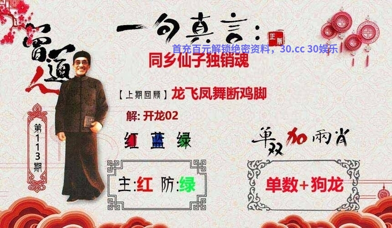 | 111期港彩特码玄机开:马12 一句真言:五术神医大道公